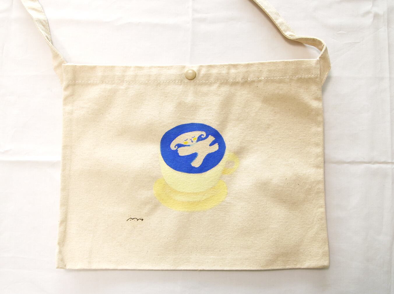 人気の[カフェラテ]シリーズの定番、ひつじやうさぎや植物の芽のようなキャラクター、[つぼみ]のデザインされたサコッシュ ボタン付きです。機能性とデザイン性を兼ね備えたこのサコッシュは、日常使いにも最適です。カジュアルなコーディネートにもピッタリ合う、シンプルでありながら印象的なデザインです。